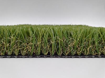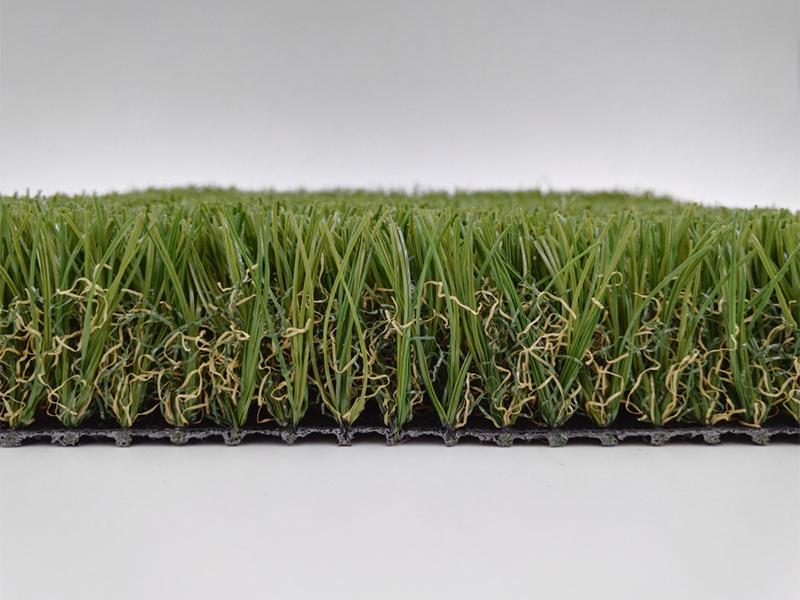 Los filamentos del césped artificial para casas doméstico VICTORY con forma de V mejoran la verticalidad y la flexibilidad del gramado. Este césped tiene un color oscuro, un aspecto más suave y no refleja la luz.