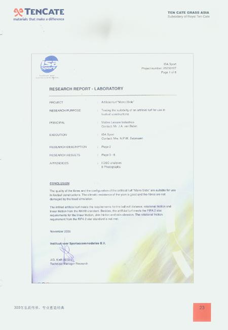 Tras años de esfuerzos continuos, actualmente nuestra empresa tiene una capacidad de producción anual de más de 6 millones de metros cuadrados. Desde 2017 hemos manufacturado más de 30 millones de metros cuadrados de pastos. Debido a nuestra experiencia en la industria de los céspedes artificiales, en 2008 fuimos seleccionados por TENCATE como su agente exclusivo en China.