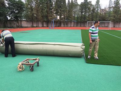 Use herramientas de medición (como una regla de acero) para determinar con exactitud el tamaño del sitio y controlar el error dentro de un rango permitido; si el tamaño difiere, modifíquelo. Una vez que se ha medido el sitio con precisión o se ha modificado el anteproyecto, se debe colocar los rollos de césped artificial sobre la posición establecida.