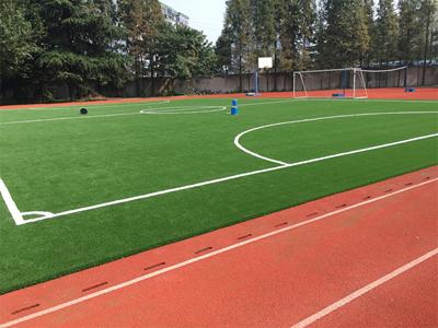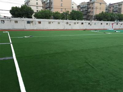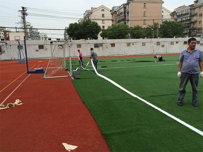 4. Si sobre el campo deportivo se necesita incrustar líneas blancas, es necesario determinar primero la posición de las líneas. Luego debe retirarse el césped verde, extender las cintas de costura y pegar la hierba blanca.